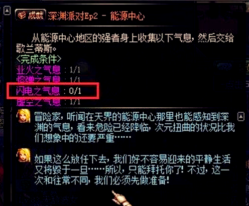 深渊派对Ep2-能源中心任务。虽然这个是成就任务,但是85版本最高级的深渊就是能源中心的,即使是出了86版本克洛诺斯群岛,大部分玩家也是选择能源中心的深渊,而想要打深渊就必须收集四个气息给歌兰蒂斯,如果没记错的话,最后一个气息能把你卡住几天都刷不出来。
