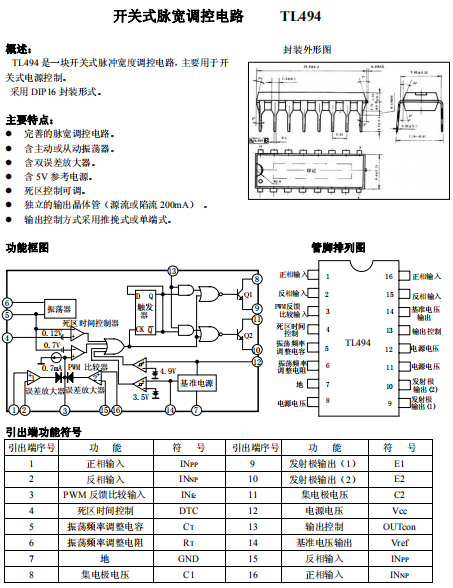 TL494 专为单芯片脉宽调制应用电路而设计 。该器件主要用于电源控制电路,可以使用该 IC 有效地确定尺寸。