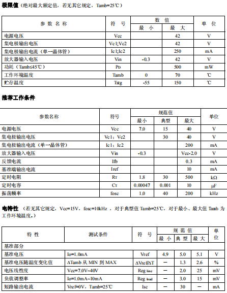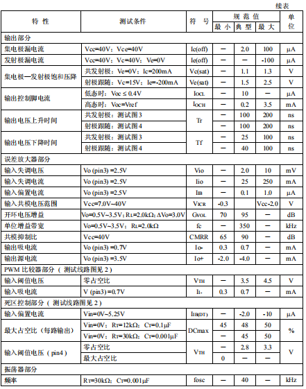 完整的脉宽调制控制电路具有主或从操作的片上振荡器片上误差放大器 片上 5.0 V 参考 可调死区时间控制 额定电流为 500 mA 拉电流或灌电流的非专用输出晶体管 推挽或单端操作的输出控制 欠压锁定用于需要现场和控制更改的汽车和其他应用的 NCV 前缀提供无铅封装*2、TL494 规格和特点