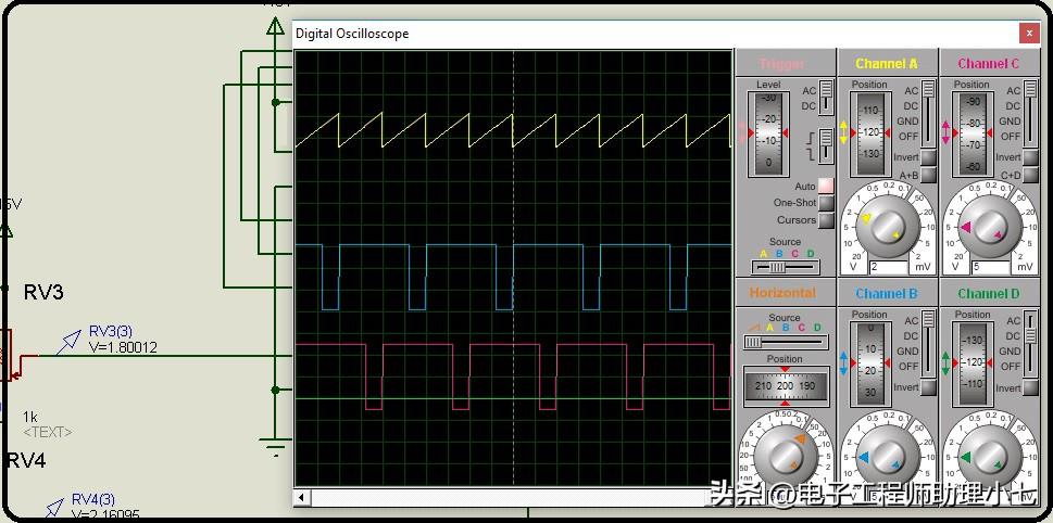 上面的电路图可用于生成 2 个 PWM 信号。每个 PWM 的宽度可以通过这些可变电阻来控制。
