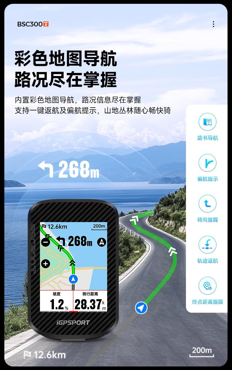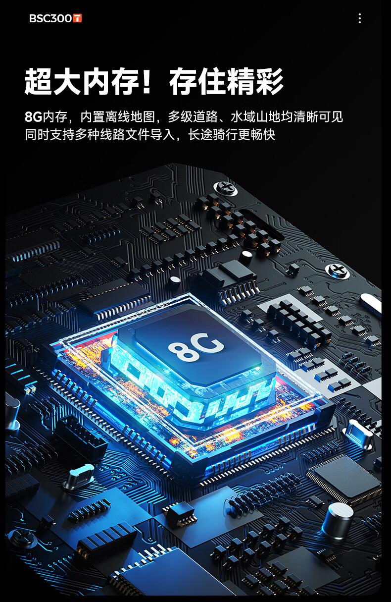 据介绍,迹驰 BSC300T 码表配备 2.4 英寸触控半透半反彩屏 ,采用按键 + 触屏融合交互;码表机身厚度约 14.1mm ,重约 67g ,拥有 8G 内存,内置彩色地图导航 ,支持一键返航和偏航提示。