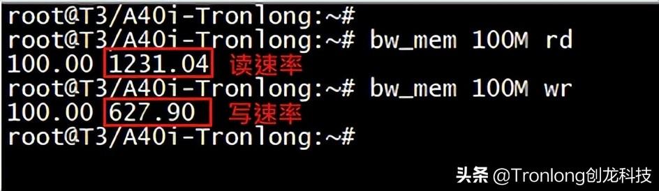 (1) DDR读写测试 评估板采用紫光国芯和江波龙的国产DDR,读写速率分别为1231.04MB/s、627.9MB/s。读速度测试:Target# bw_mem 100M rd写速度测试:Target# bw_mem 100M wr