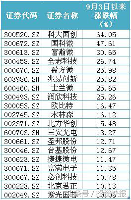 近期,芯片概念股持续上涨,自9月3日华为发布全球首款移动AI芯片以来,激起了芯片股做多的热情,整个芯片板块近九成个股期间实现上涨。其中, 芯片三大龙头股累计涨幅居前三,包括科大国创累计涨幅高达64.05%,国科微涨幅也达到了47.61%,富瀚微涨超 30%。 此外,全志科技、盈方微、兆易创新、士兰微等16只芯片概念股累计涨幅也超10%。