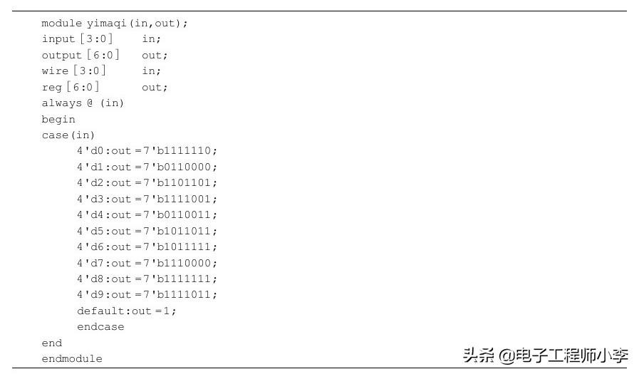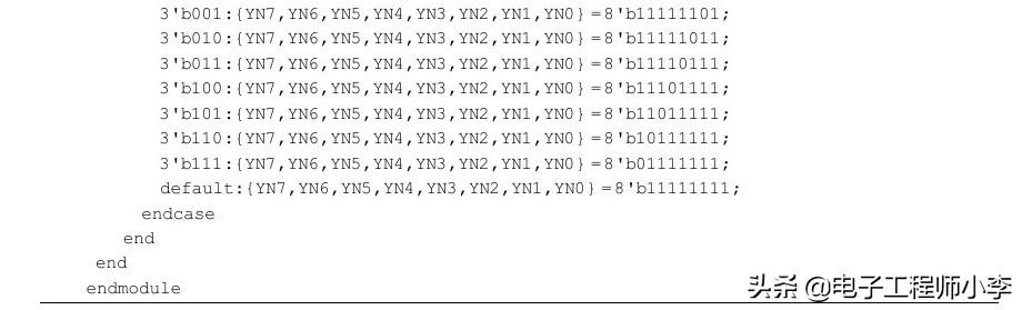 在本例中,使用了if和case两种语句完成程序设计。在复杂的数字电路设计中,经常会用到这种设计方式。