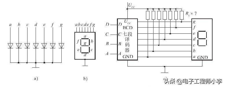 图5-3 译码电路及数码管的结构及接线图