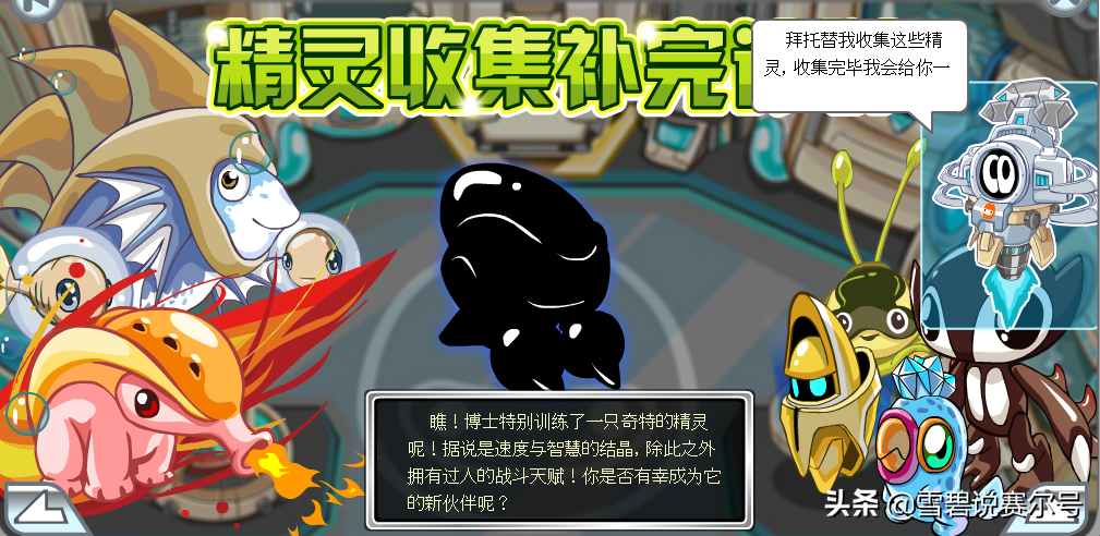 派特:小赛尔!你回来啦!太好了!有没有遇到神秘事件,或着带着奇异力量的精灵?