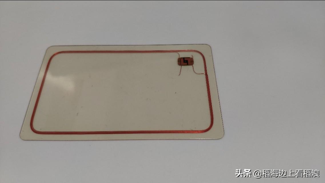 上图的芯片是接触式卡片的芯片,还有的卡片是双界面卡片的,接触式卡片是通过触点接触加电压供电,双界面卡片除了触点供电,还有感应线圈感应供电,线圈的样子如下图: