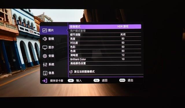 明基TK860具有很丰富的功能,主要都是针对于色彩进行提升的设计。它配置有独立色彩芯片,可以帮助这款投影机专门处理投影画面色彩以及动态对比度,能够更好地还原画面色彩,提供更好的观影体验。尽管这款投影机默认的模式已经足够优秀,但是如果你是专业人士,想要挖掘明基TK860更多潜力,依旧可以对多种细节进行对应调节。