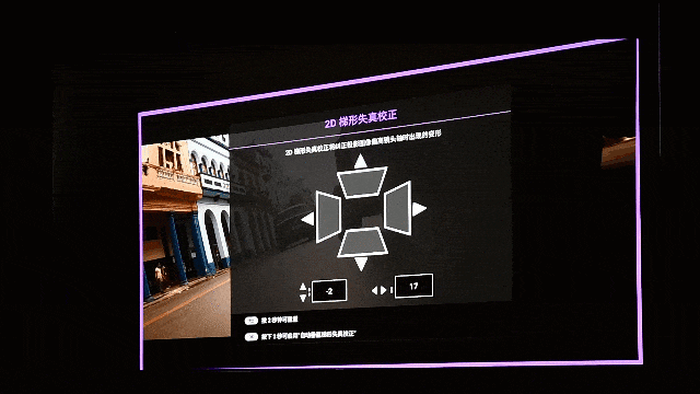 明基TK860支持四向梯形校正,因此不用担心画面调整复杂的问题,不管居中使用,还是将投影侧投,都可以快速调节出周正的画面效果。
