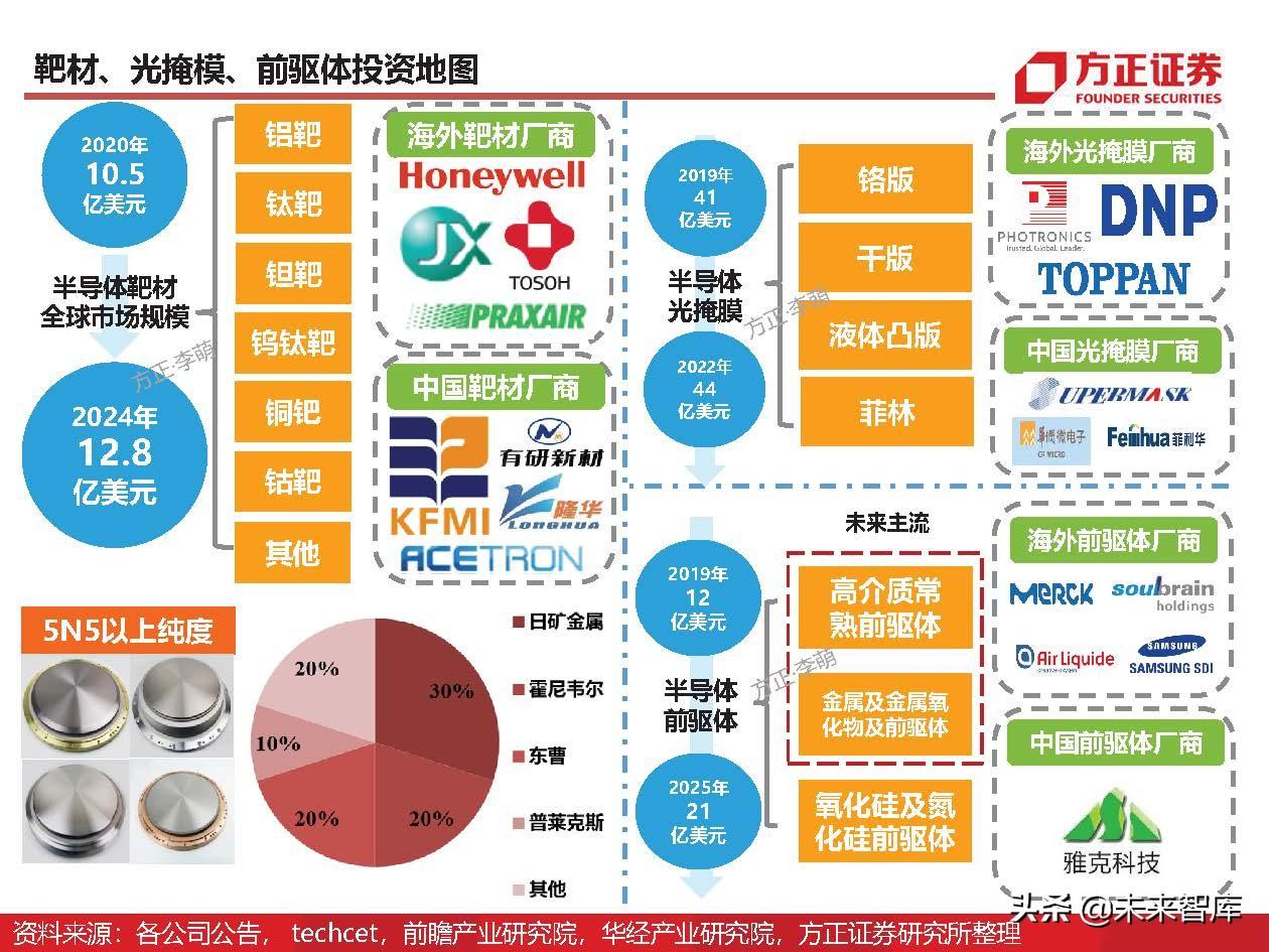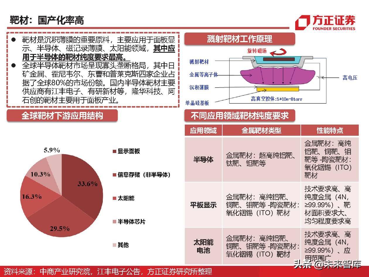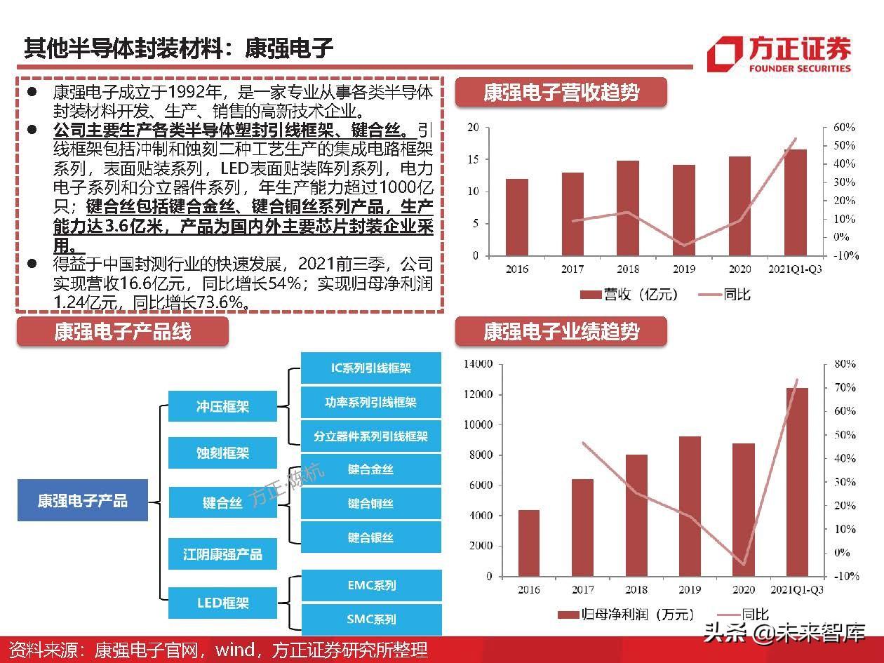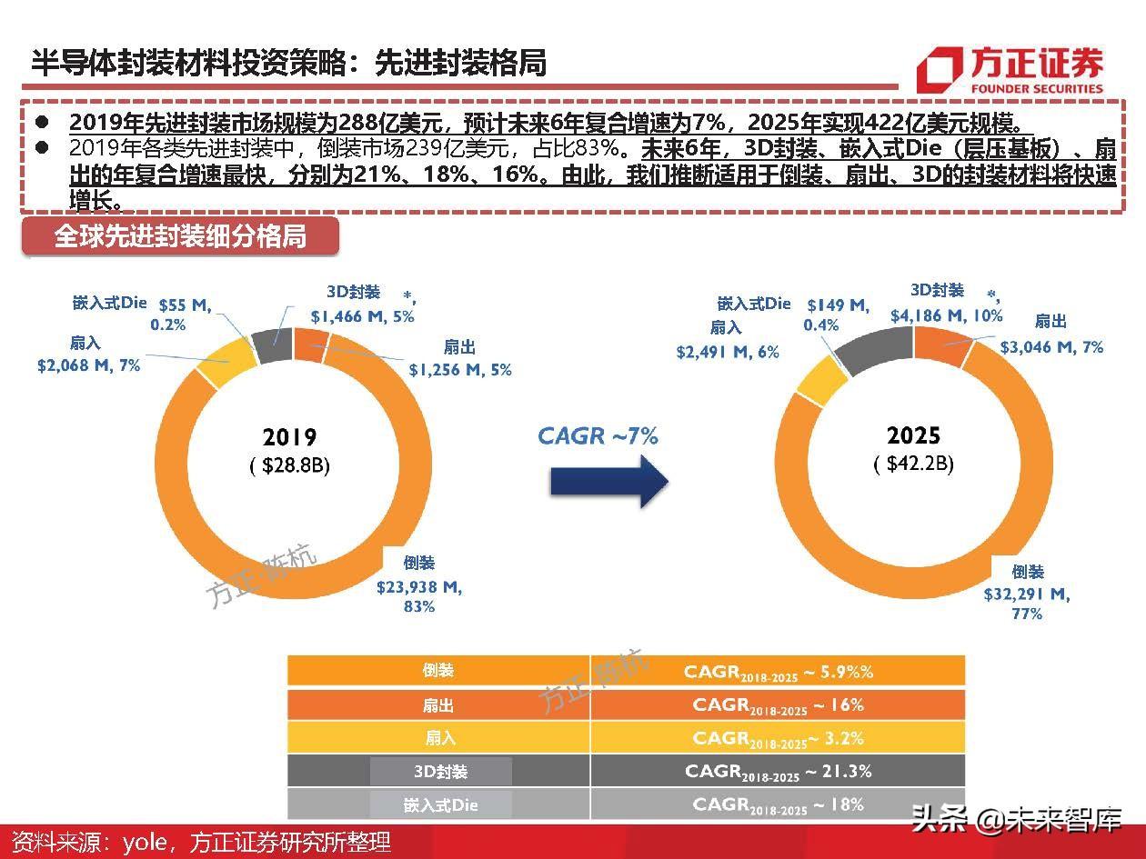 我们认为,在中期维度方面,封装材料基于更高的国产化率,能够更早地实现国产替代。同时,国 内封测全球领先,定增扩产明显,下游驱动更为直接。在长期维度方面,半导体制造材料相较于封 装材料拥有更高的壁垒和国产化潜力,所以制造材料的长期成长空间更大。