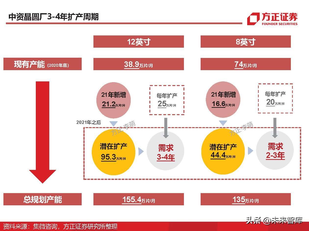 我们认为半导体的景气周期存在“设备先行,制造接力,材料缺货”的普遍规律。考虑到国内晶圆厂已经进 入扩产环节,而且新增产能将于2022年陆续开出。晶圆产能扩充会直接导致上游材料端出现了供不应求的 情况,从而形成周期性的“硅片危机”。全球硅片大厂信越化学已经发布涨价声明,称在2021年4月对部分 硅片产品提价。同时,沪硅产业董秘李炜在SEMICON CHINA 2021会议上曾表示目前有部分品类涨价,并 非全部,而公司硅片的订单已经超过了供给能力。