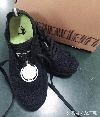 首先鞋带解开,大约在鞋舌的中部位置,鞋带从芯片镂空的位置穿进去