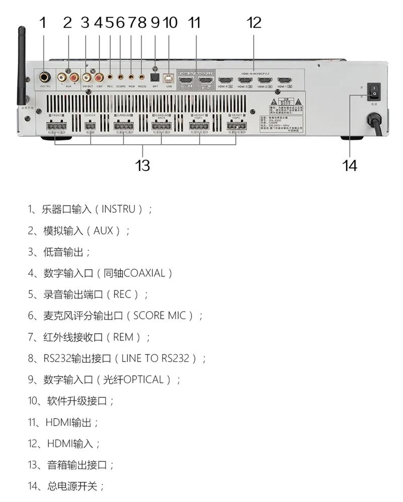 内置Intelligent Room Calibration智能室内校准软件,简称IRC。声场精准校正,从而令用户能够轻松快捷地通过家庭影院系统改善室内的音场效果,享受极致K歌与观影。