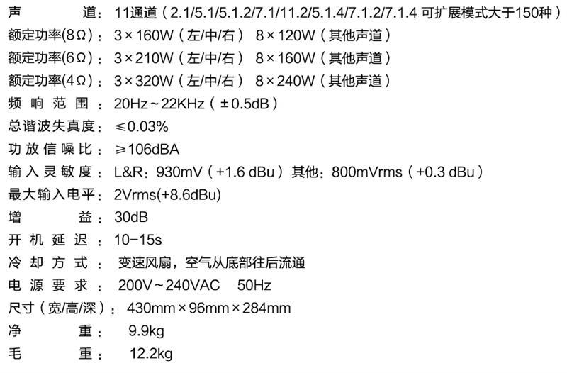 作为一台11通道全景声影K解码合并机,高清解码显然是至关重要!位于功放背板上方的特制多层沉金电路板——线路上的阻焊与铜层的结合更牢固,不易氧化且不易产生金丝短路,寿命更长,集中了最核心的高清音视频解码、DSP处理及程序管理等。定制音频专用DSP芯片,效果大幅提升;全面应对杜比全景声及DTS沉浸式音效解码,同时负责进行DSP声场后处理,其中包括声场虚拟和声场扩展,以及进行音效的调整和诸多喇叭的频响曲线调整和音色校正。