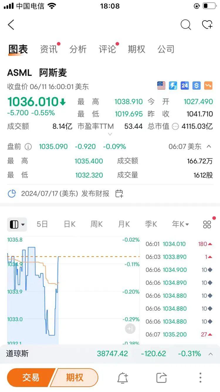 截至当地时间周五美股收盘,阿斯麦股价大跌超5%。