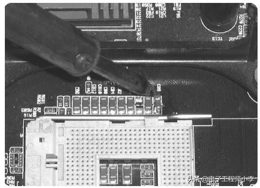 拆卸这类元器件时,要用热风枪垂直于电路板均匀加热,焊锡熔化时迅速用镊子取下。由于体积稍大的镊子对热风阻挡作用不大,也可以用镊子夹住元器件并略向上提,同时用热风枪加热,当焊点焊锡刚熔化时即可分离。取下前注意记下器件的方向,必要时要标在图上。
