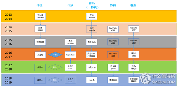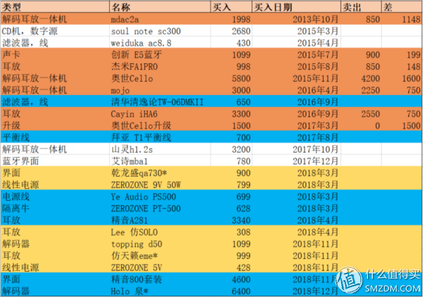 再贴一张所有设备升级的时间价格表(其中不包括耳机和线材,*代表二手购入)