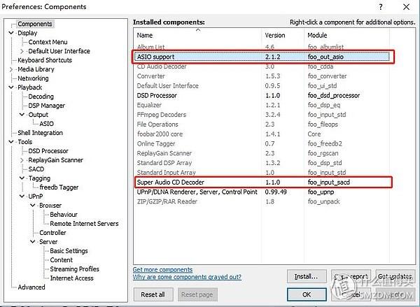 主要用到的软件就是Foobar,所以只有播放本地音乐的时候,才能进行此转换过程,大家可以从官网下载最新版本,并且进入Perference-Components安装以下三个插件。