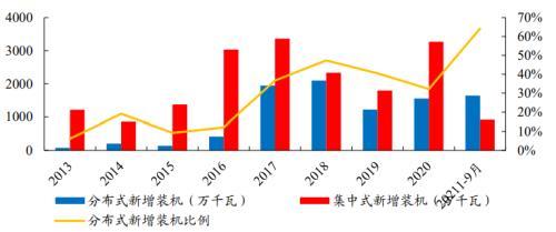 2021年分布式光伏装机比例大幅上升