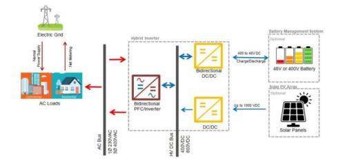 储能变流器连接太阳能组件、电网、负载及电池