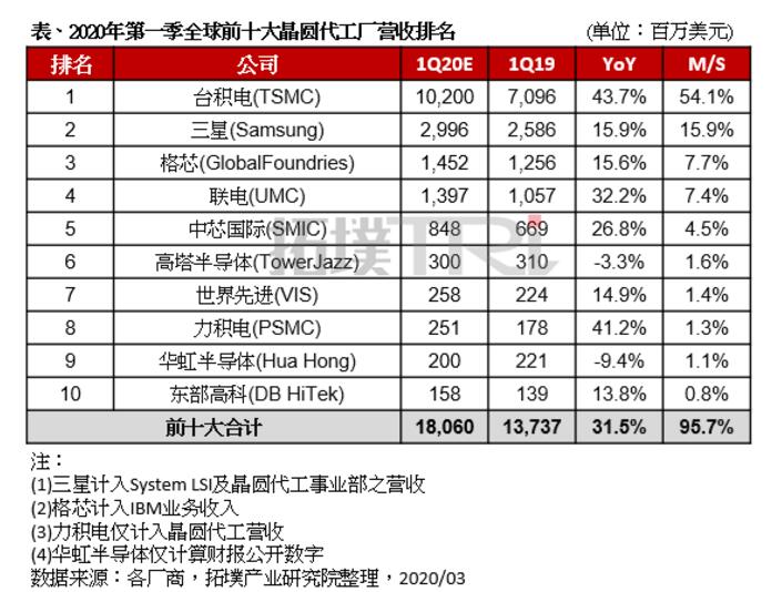 目前,我国半导体芯片产业对金钱、人才、技术都有巨大的缺口,同时这也说明成长空间还非常大。同时,我们看到华为海思,中芯国际,华虹半导体等公司也取得了巨大的进步。 集邦咨询旗下拓墣产业研究院公布的2020年第一季度全球十大晶圆代工厂营收排名中,中芯国际排名第5,华虹半导体排名第9。