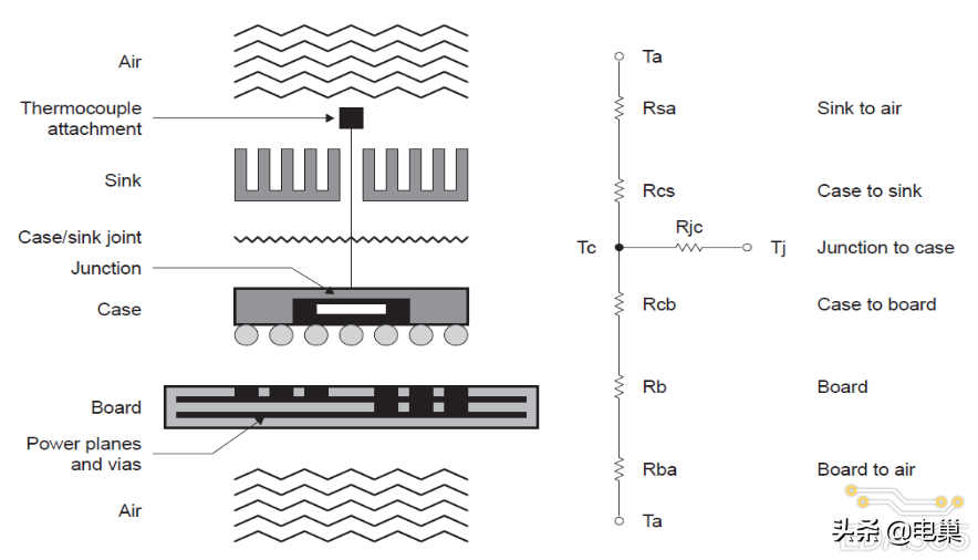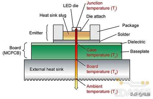 半导体器件热量主要是通过三个路径散发出去:封装顶部到空气,封装底部到电路板和封装引脚到电路板。