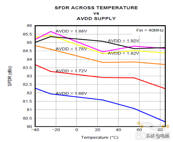 散热对芯片而言是非常重要的,下图以 ADS58C48 为例,说明了在不同的温度下,芯片(高速 ADC 为例)的性能会有不同的表现,在高温下性能往往恶化。因此在设计系统时必须高度关注芯片的工作温度,轻者会影响系统的性能,重者可能会造成芯片损坏。