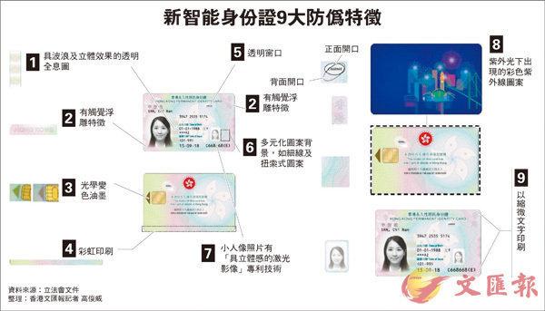 2018年第四季起,香港市民将更换有9项防伪特征的新一代智能身份证: