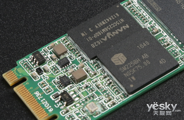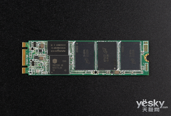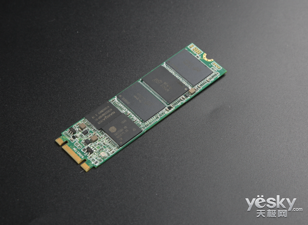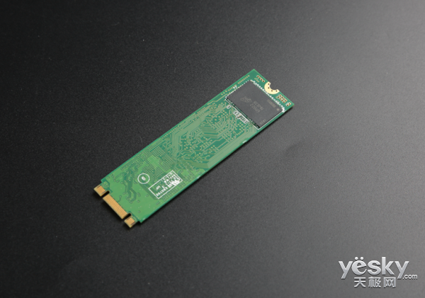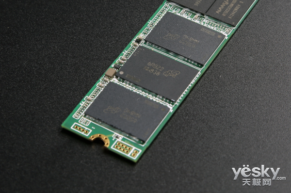 在闪存颗粒上,采用4颗镁光科技编号为6RB22NW838的、基于3D技术单颗容量128GB的TLC闪存颗粒,四颗闪存颗粒总容量达512GB。