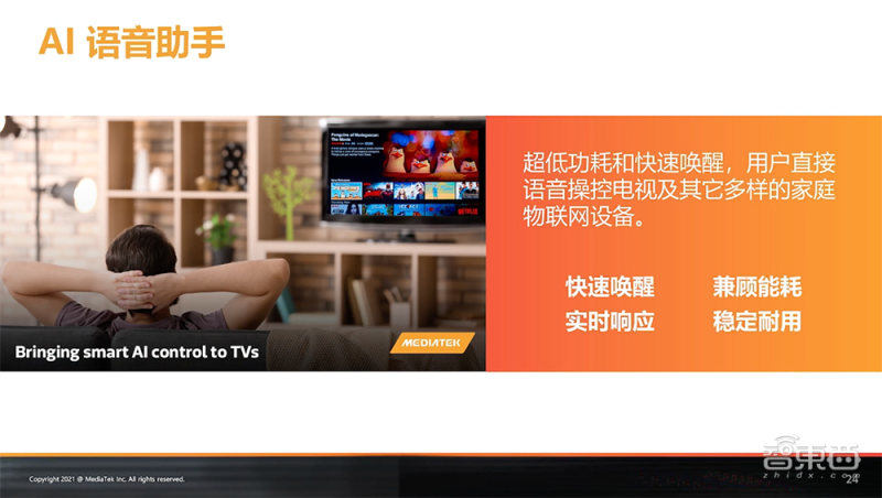 联发科电视事业部总经理陈俊昆谈到:“随着智能家居设备呈现高度智能化、多样化的发展趋势,智能电视正在潜移默化地改变消费者的客厅生态,全新的AI智能影音时代已初现端倪。”