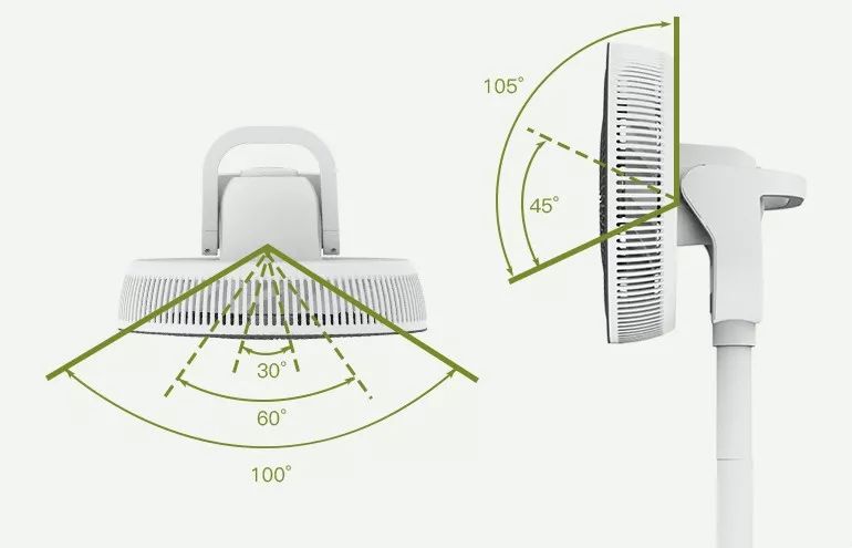 普通风扇多是只能左右摇头,这款风扇可以广角多角度送风。