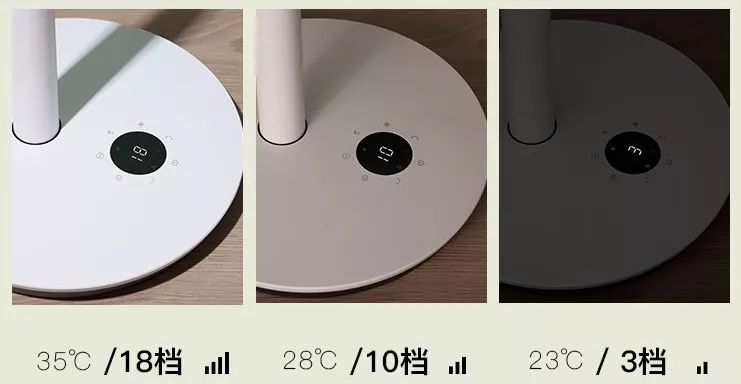 举个例子:你睡前将循环扇温度设置为23℃,夜里当温度低于23℃时,循环扇会自动降低风速。