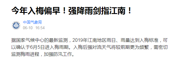 打开百度问问苍天为啥要这么对我,一搜才知道原来是今年江南提前入梅了!