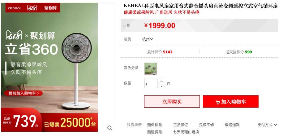 618轰轰烈烈进行中,先把我争取到的抄底活动价通知到大家~这款科西循环扇,在官方旗舰店日常销售价¥1099,这几天聚划算券后到手价也要739!