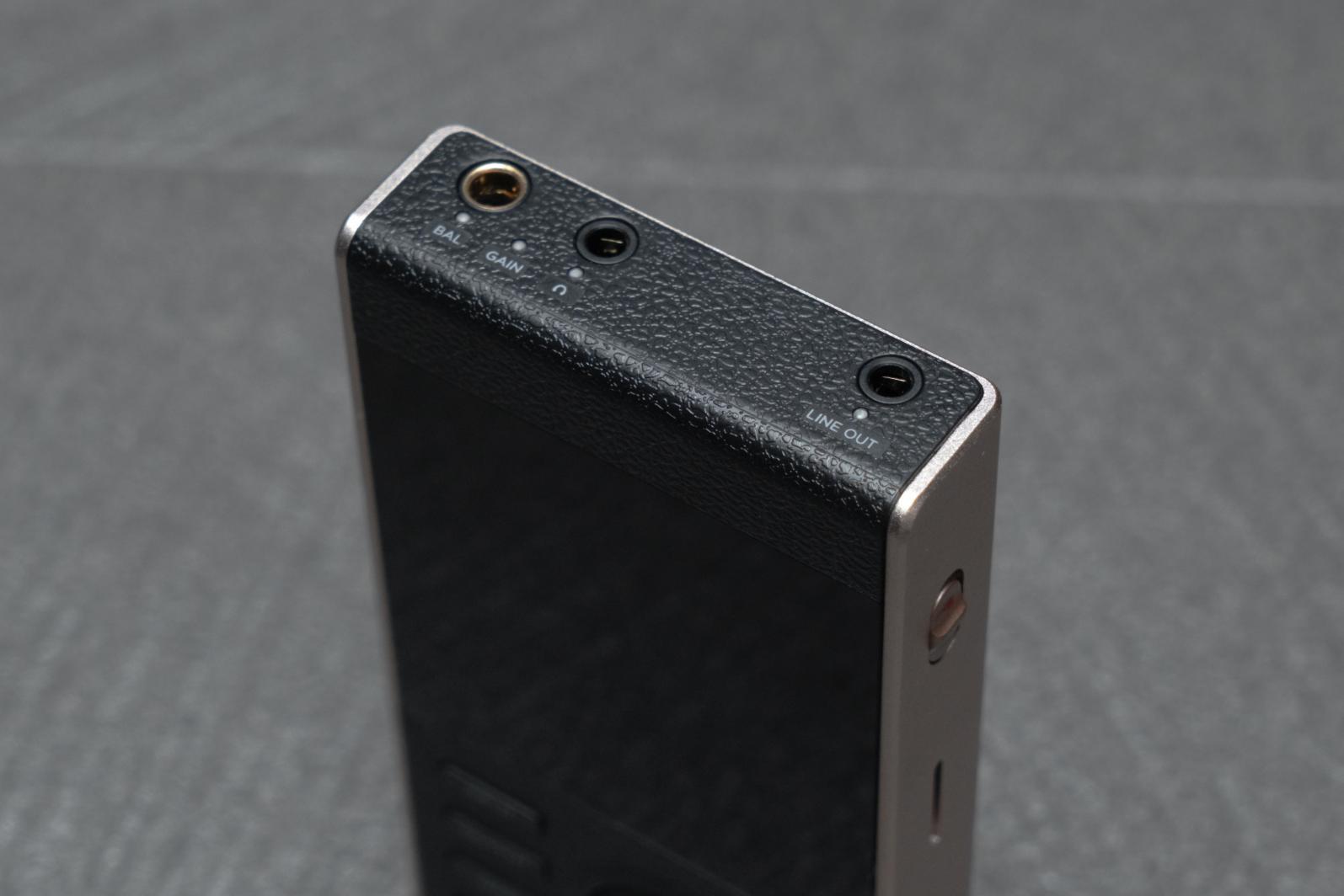 布局方面,HIFIMAN HM901R正面下方为按键区域,设有音量控制盘、电源键/播放/暂停键、输入切换键、输出切换键、增益键、充电键;HIFIMAN HM901R的顶部有三个接口,分别是4.4mm平衡耳机输出口、3.5mm平衡/单端耳机输出口,以及3.5mm线路输出口;HIFIMAN HM901R的底部有一个支持数字输入的Type-C充电接口——如果想把它接在移动设备上,建议用充电键切换到禁止充电状态。
