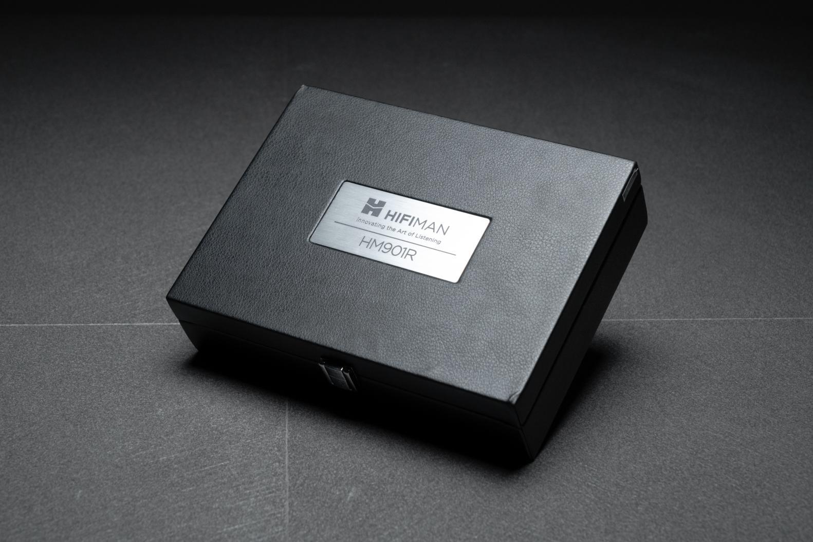 HIFIMAN HM901R的设计是浓浓的HIFIMAN家族风格,这种风格从盒子一直延伸到了产品本身,其中盒子采用黑色皮革加银色金属拉丝标志的组合,看上去“格调”颇足。