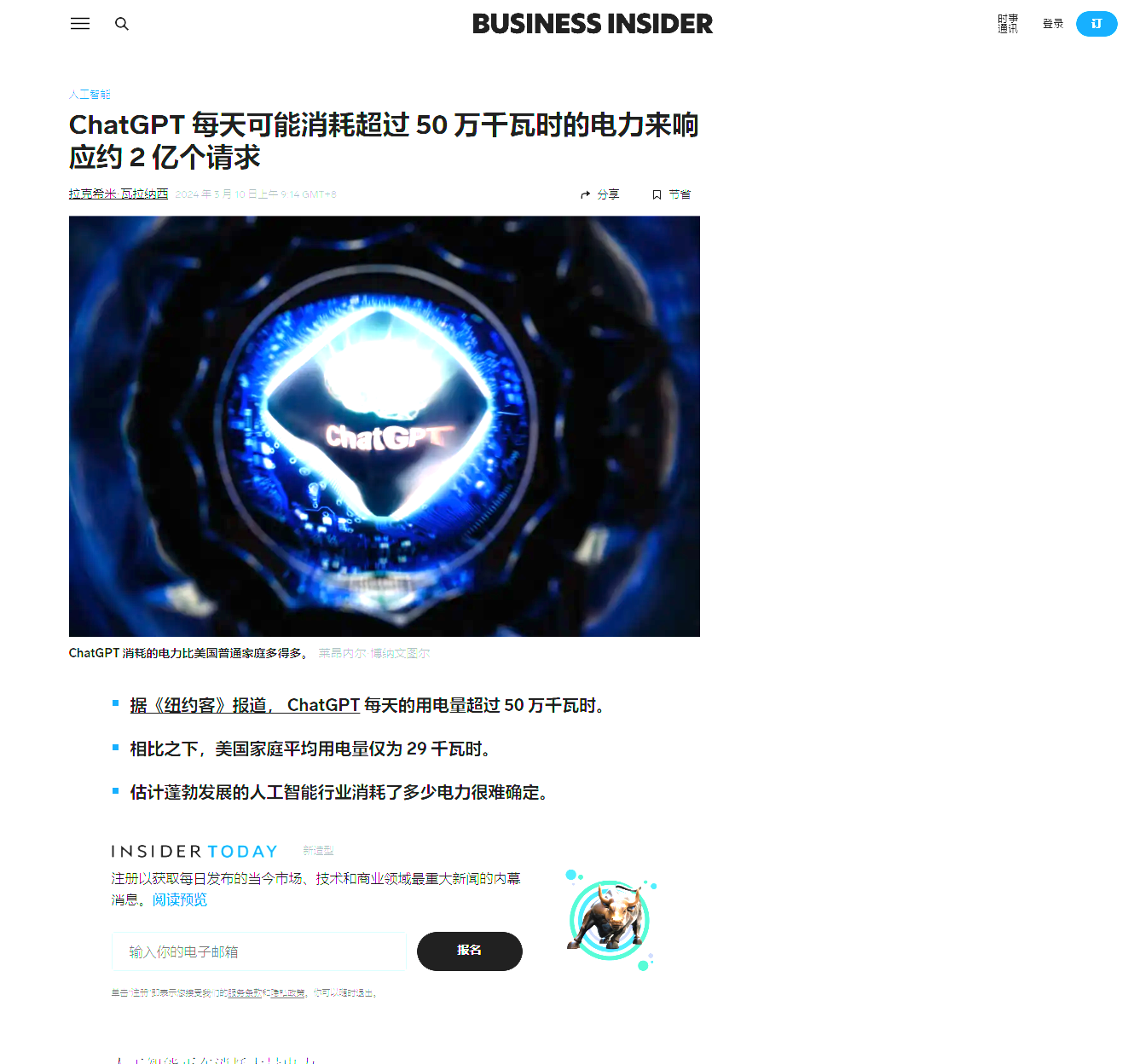 在今年年初的时候,美国知名杂志《纽约客》报道,ChatGPT每日耗电量或超过50万千瓦时,相当于美国家庭平均用电量的1.7万倍。正如马斯克所说,在可以预见的未来,电能短缺将成为制约AI发展的主要因素。