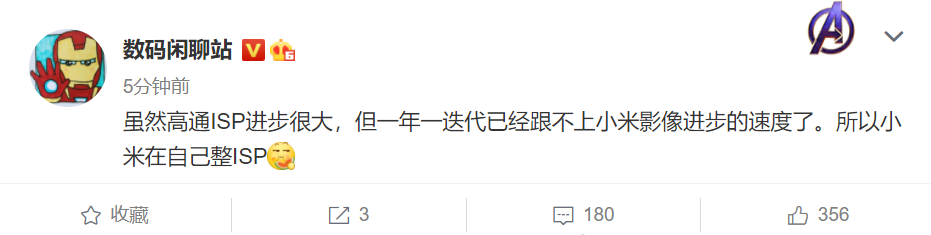 最早有关小米要研发ISP的消息可以追溯到去年年底,数码博主@数码闲聊站 透露,基于自家旗舰产品影像能力不断提升的需求,小米已经不满足于高通芯片内置ISP算力性能,开始着手自研ISP芯片。综合前后语境,当下官宣的澎湃芯片,十有八九就是自研ISP。
