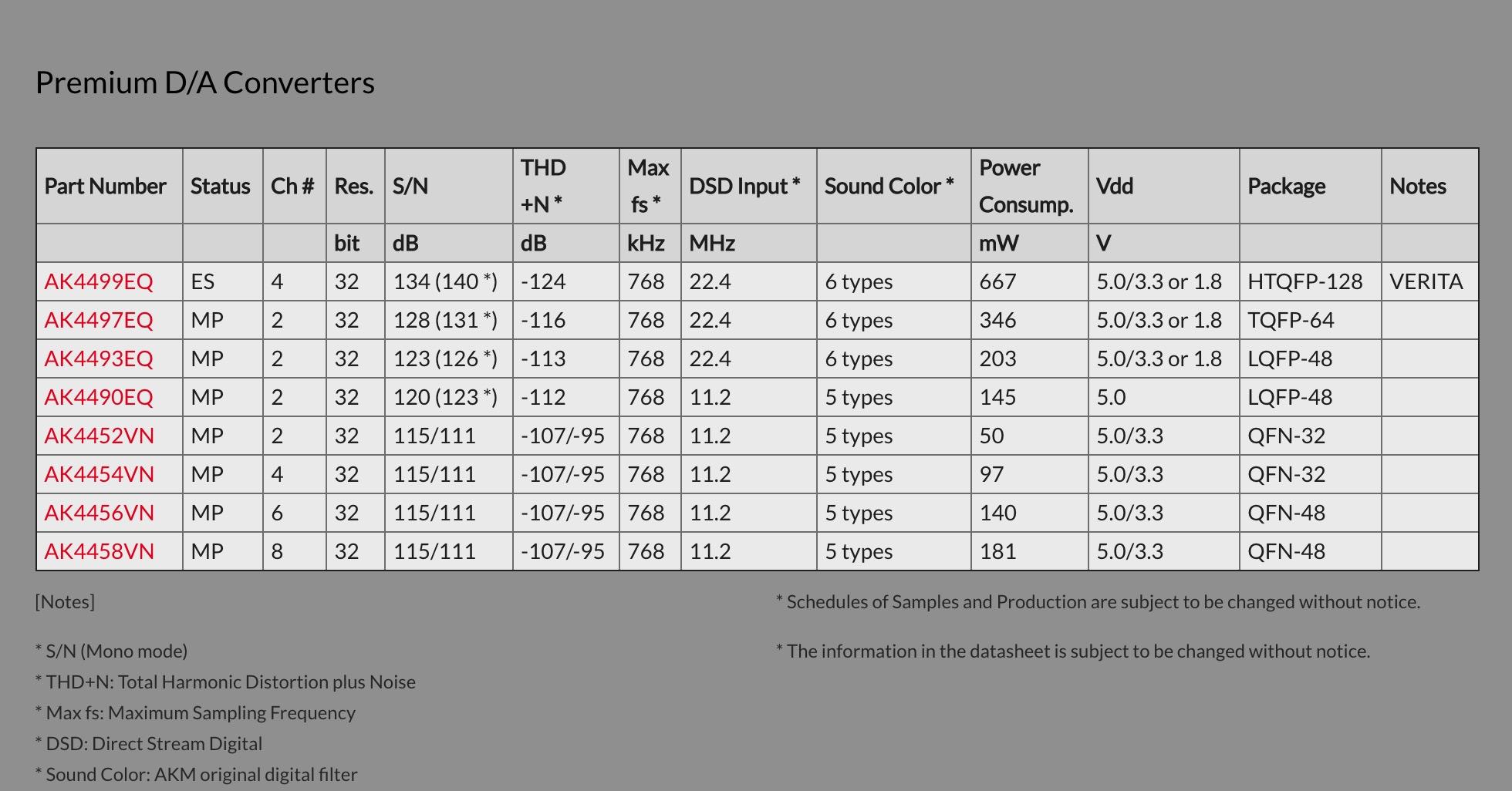 上述的三位主流芯片厂家,他们生产各自"性能指标不同"的芯片,提供给广大HiFi厂商。