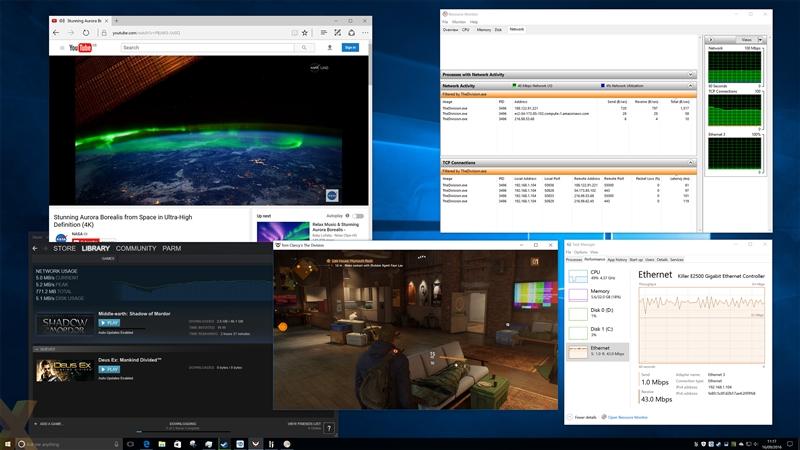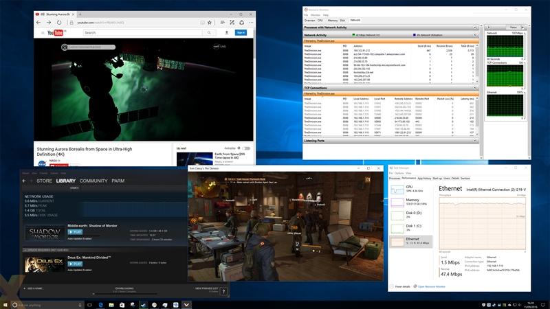 下面看实际应用方面,同时开启《全境封锁》和YouTube视频,这时看延迟 。