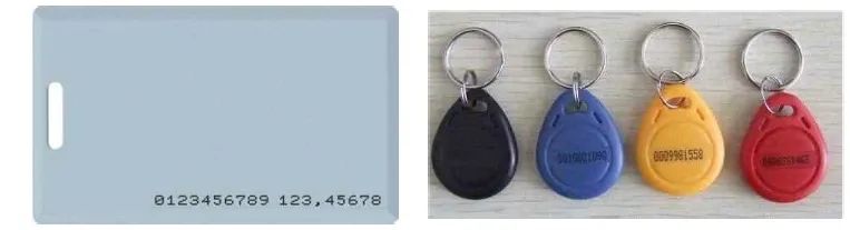 还可以采用编码区分法 来区分:ID钥匙扣上一般有00开头的10位或8位数字,ID白卡上有00开头的18位数字。而这些数字就是ID卡内数字的十进制表达。而IC钥匙扣卡和IC白卡则一般没有数字(参照图3)。当然,各自部门的编号等的除外。