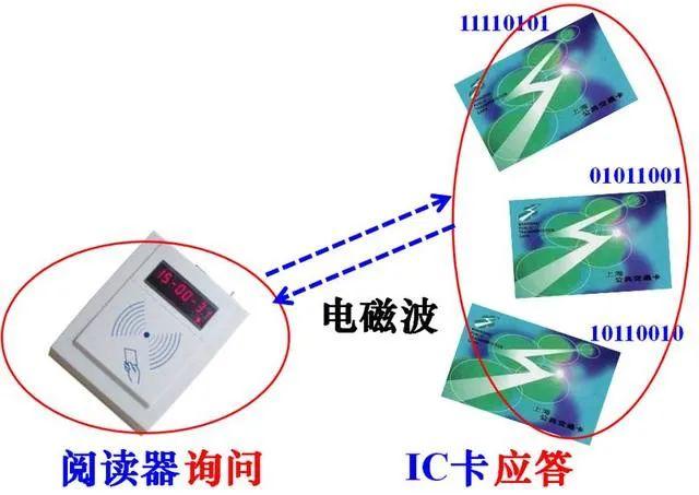 IC: 使用IC卡时,射频读写器向IC卡发一组固定频率的电磁波,卡片内有一个IC串联协振电路,其频率与读写器发射的频率相同,这样在电磁波激励下,LC协振电路产生共振,从而使电容内有了电荷。