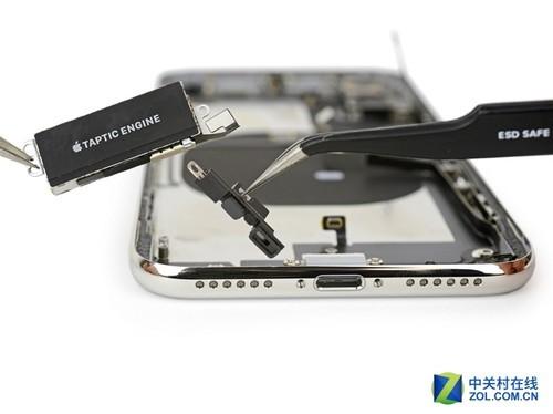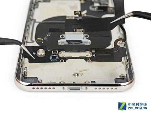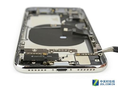 扬声器、防水橡胶、Tapic Engine震动模块、无线充电线圈等物拆除后,底部就算全拆干净了;但还有个神秘芯片来到了我们的视线。