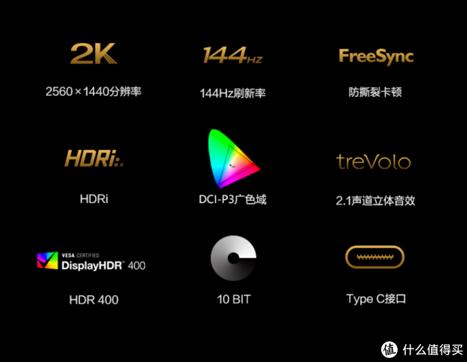 分辨率2540×1440,IPS屏幕,144Hz 、FreeSync、HDR400、10bit面板、95% DCI-P3 色域、DSP芯片内置音响,从绘图到游戏都能胜任。