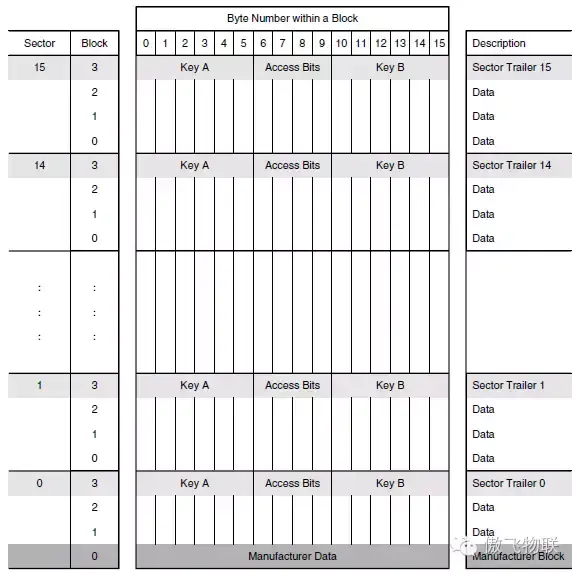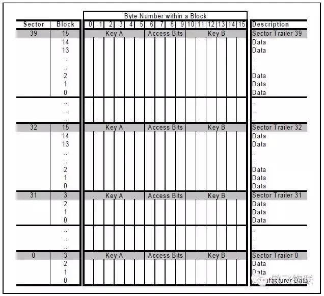 每个扇区都有一个控制自己扇区操作权限的KEYA,KEYB密钥;