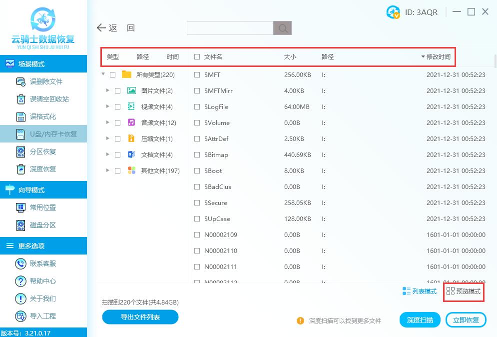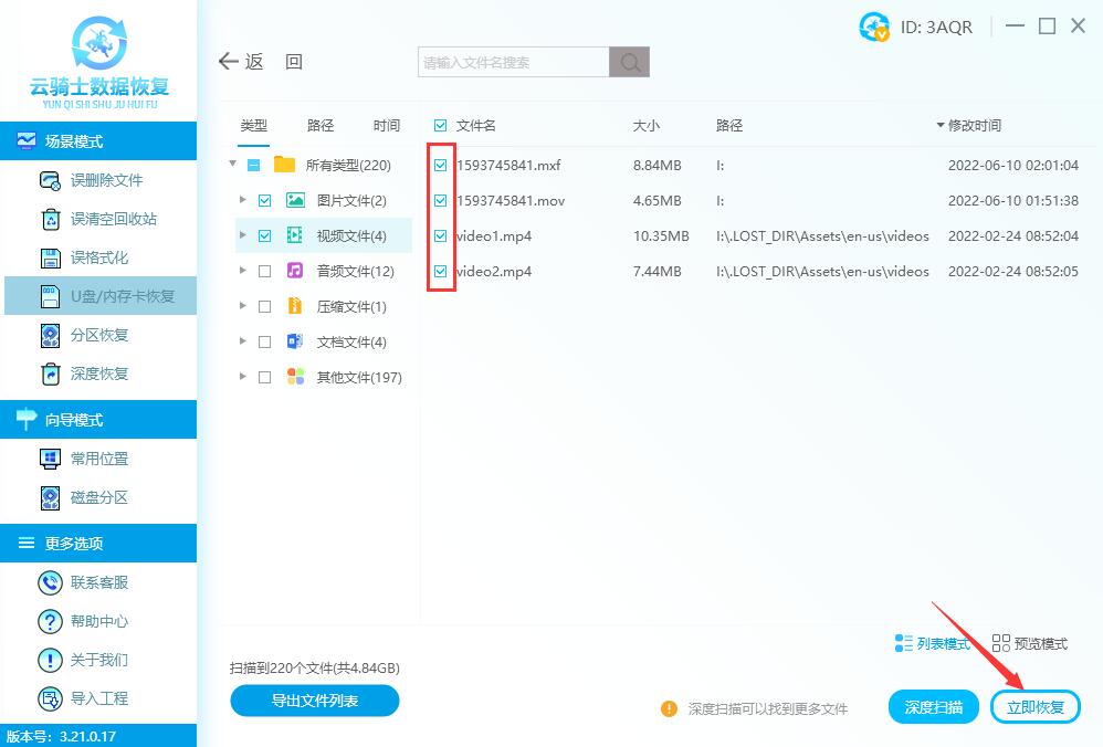 存储卡数据丢失的烦恼想必大家都不想有所体会,所以做好完全措施才是保护数据的关键,比如平时要养成备份重要数据的习惯。如果发生存储卡数据丢失问题,也不要太过于慌张,在数据未覆盖的情况下,赶紧借助云骑士数据恢复软件进行数据恢复。