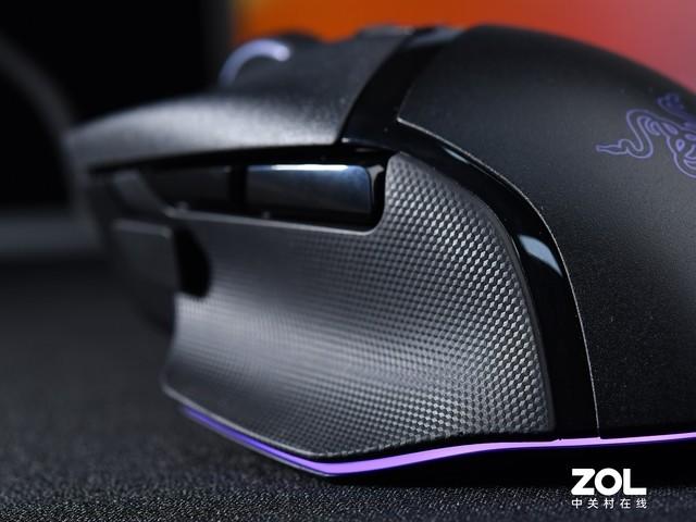 雷蛇巴塞利斯蛇V3游戏鼠标左侧保留拇指手托设计,可以给我们的右手带来更好的支撑效果。此外,它的拇指按键也得以保留。拇指按键的默认功能为调节DPI,需要在按键按下时才会触发,并瞬间降低DPI,也就是我们所熟知的狙击键。
