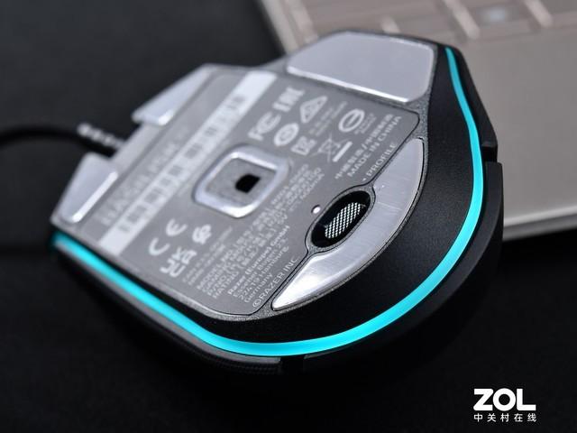 雷蛇巴塞利斯蛇V3游戏鼠标共设置5块特氟龙脚贴,它的整体顺滑度很是很不错的。底部靠上考下位置的按键则为“Profile”按键,它的主要功能是切换配置文件,并可上方的指示灯颜色来判断切换的是哪一组配置文件,这款鼠标可以配置5组文件,在雷云3中配置即可。