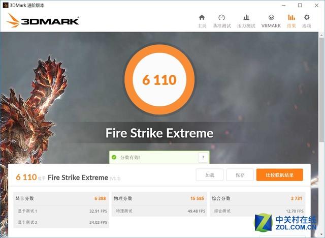 通过新版3D Mark中的Extreme测试,我们得出结果,对于影驰GTX 1060名人堂显卡来说,在Extreme这样的2K分辨率下跑出了总成绩6110的不错成绩,其中图形分数更是达到6388分,成绩十分不错,照比公版有着一定幅度的领先。