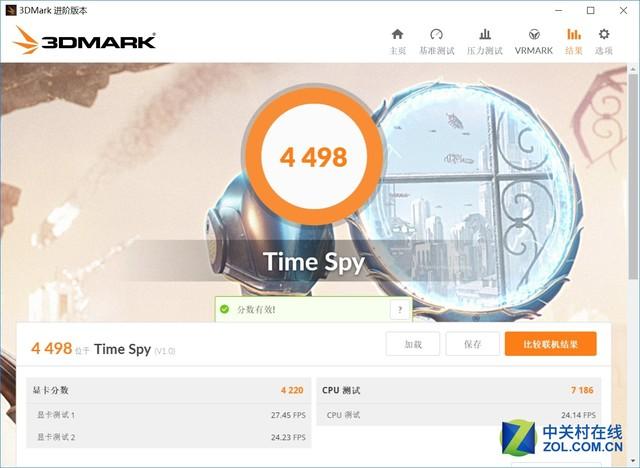 Time Spy是第一个针对DX12的独立第三方基准测试工具,整个引擎完全基于DX12设计,可充分压榨显卡的DX12性能,测试负载也远远高于此前的DX11 FireStrike。在此项测试中,我们可以看到,影驰GTX 1060名人堂在此项测试中得到了4498分,GPU分数为4220分,DX12性能优异。